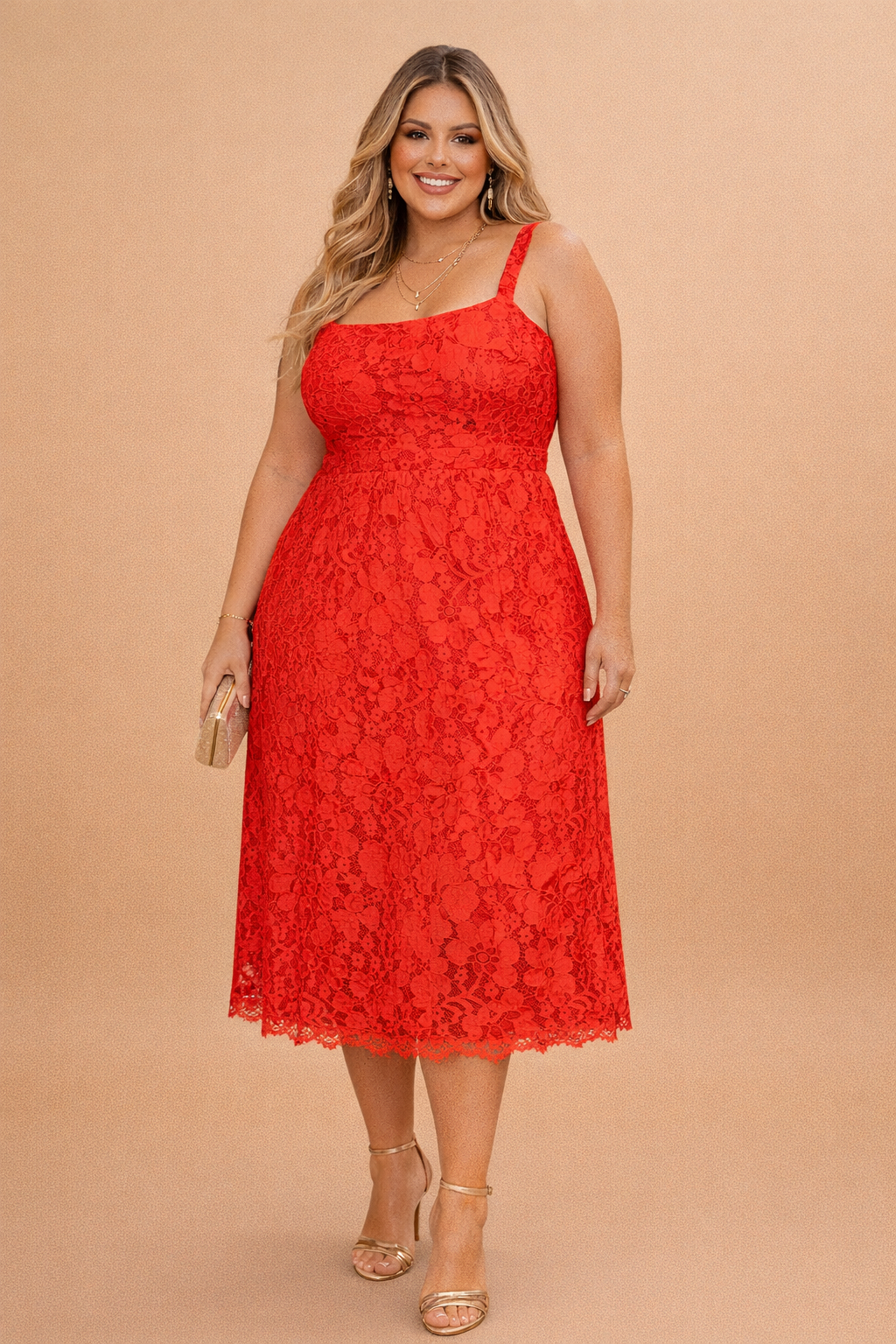 Impactante, feminino e extremamente elegante! O vestido de festa em renda vermelho é aquela peça que transforma qualquer ocasião em um momento inesquecível. Com renda delicada em desenho floral e acabamento refinado, ele valoriza as curvas com sofisticação e romantismo na medida certa.