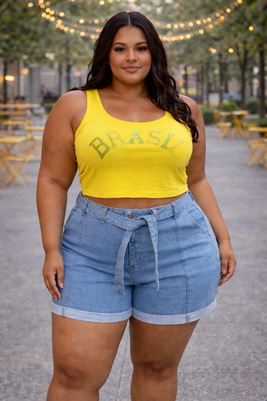 Regata Cropped Alça larga caimento leve e justo ao corpo.