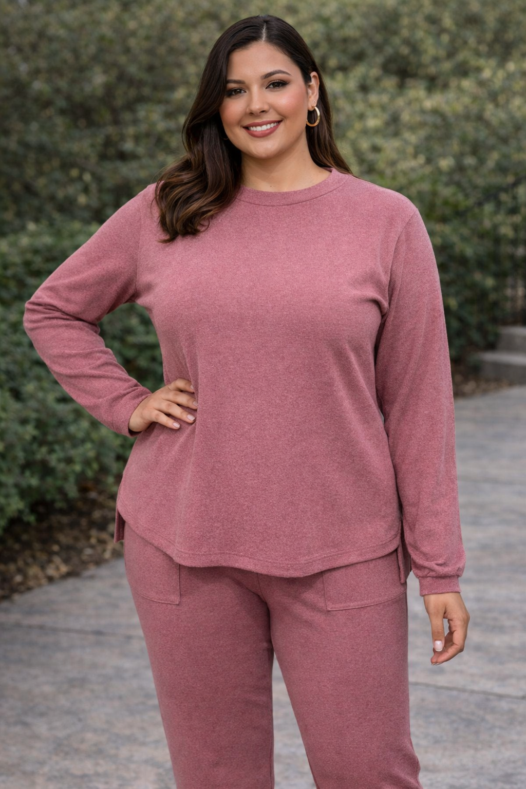 Blusa em malha flanelada luxo na cor rosa queimado, perfeita para quem busca conforto com um toque sofisticado nos dias mais frios.