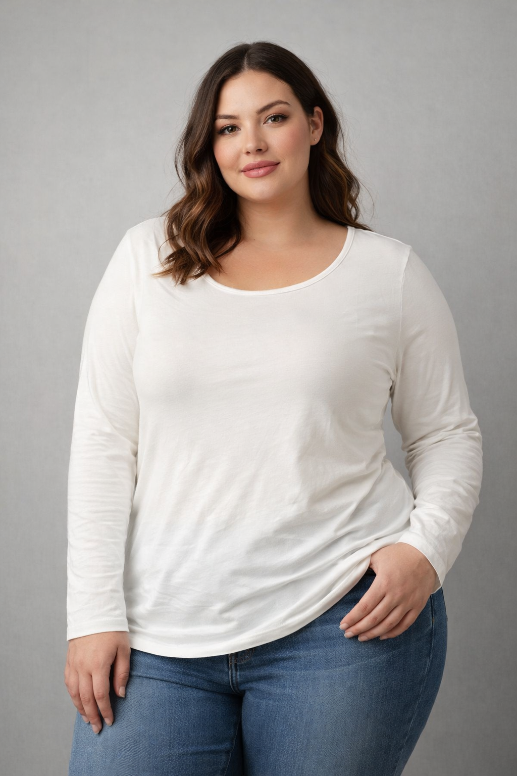 Blusa básica de Viscosi plus size, uma peça versátil e essencial para qualquer guarda-roupa.
