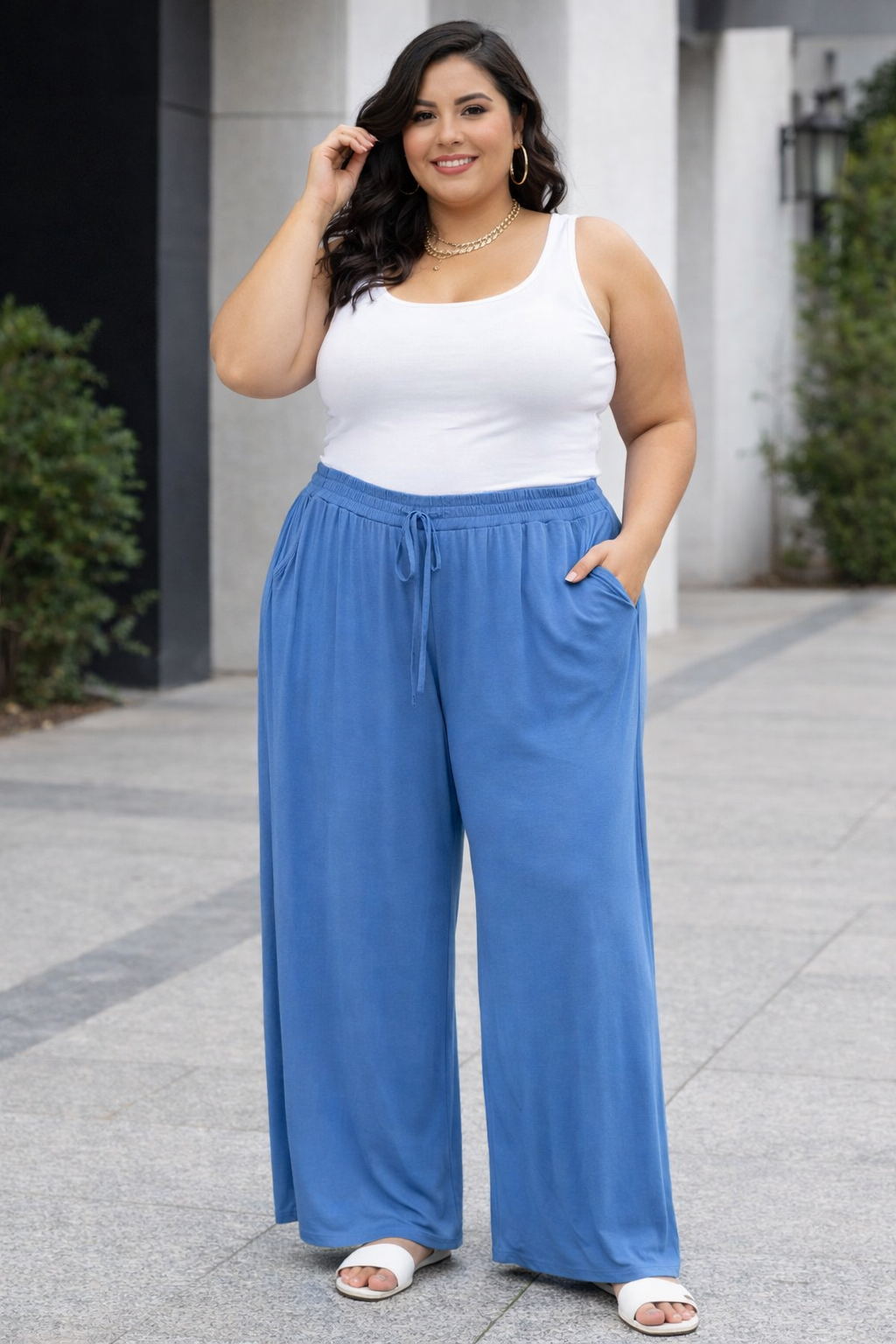 A calça pantalona de malha é uma peça versátil e confortável que tem ganhado destaque na moda contemporânea. Ela se caracteriza por sua modelagem ampla, com pernas largas que se estendem desde a cintura até a barra, proporcionando um caimento elegante e fluído.